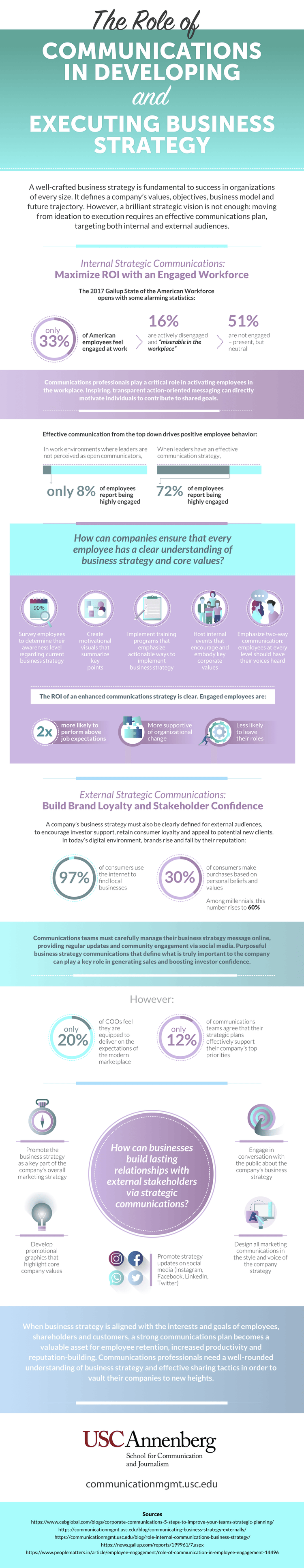Learn the essentials of a strong communications plan for your business strategy. View the full infographic by USC Annenberg School for Communication and Journalism:
